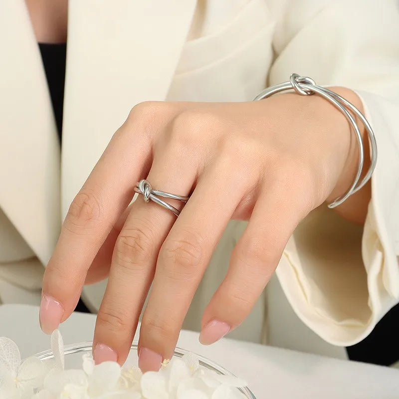 Elevate your style with our Athena Twist Bangles. The twisted design adds a touch of sophistication to any outfit. For the ultimate luxury look, pair with our Braided Twist Ring. Make a statement with these elegant bangles.