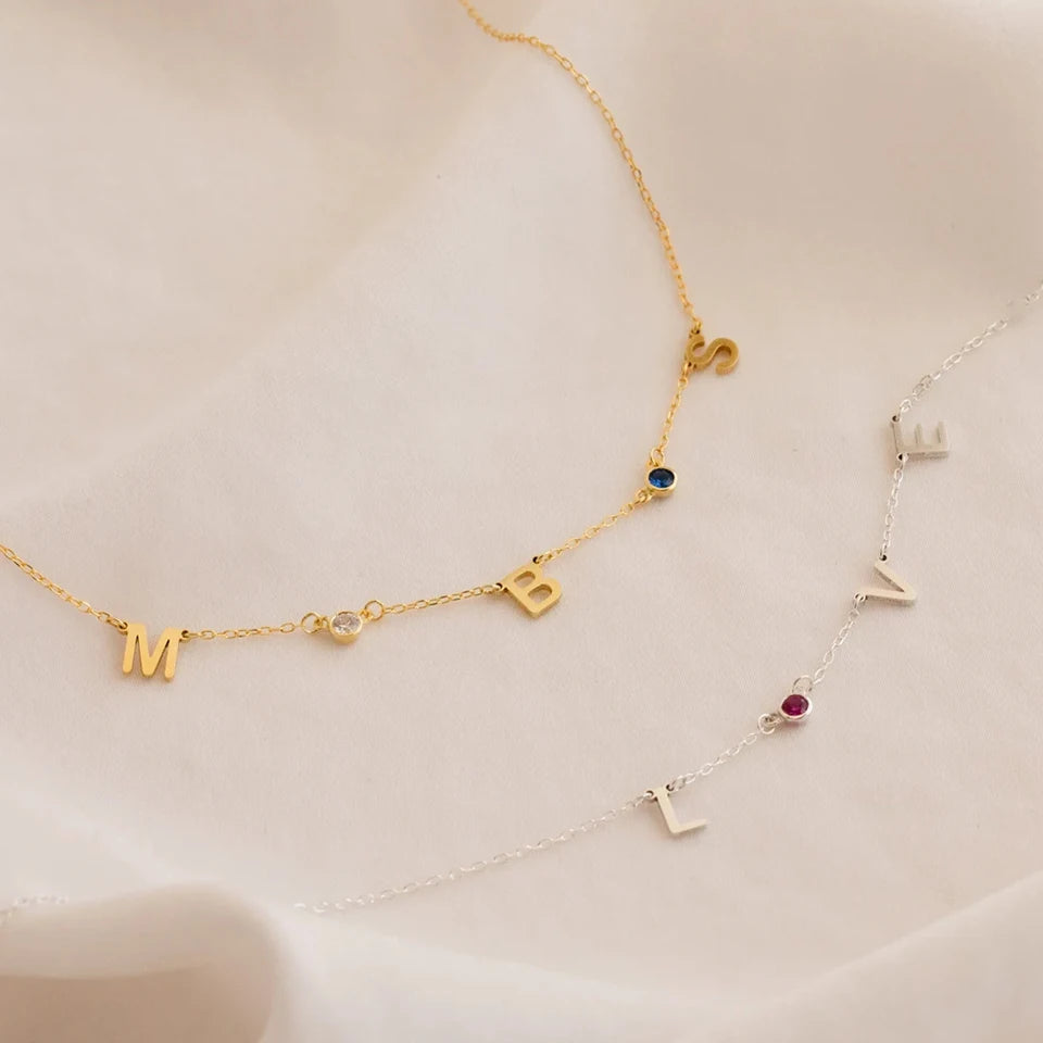- Can add up to 7 letters. Can replace letters with birthstones, maximum of 2 birthstones per necklace.