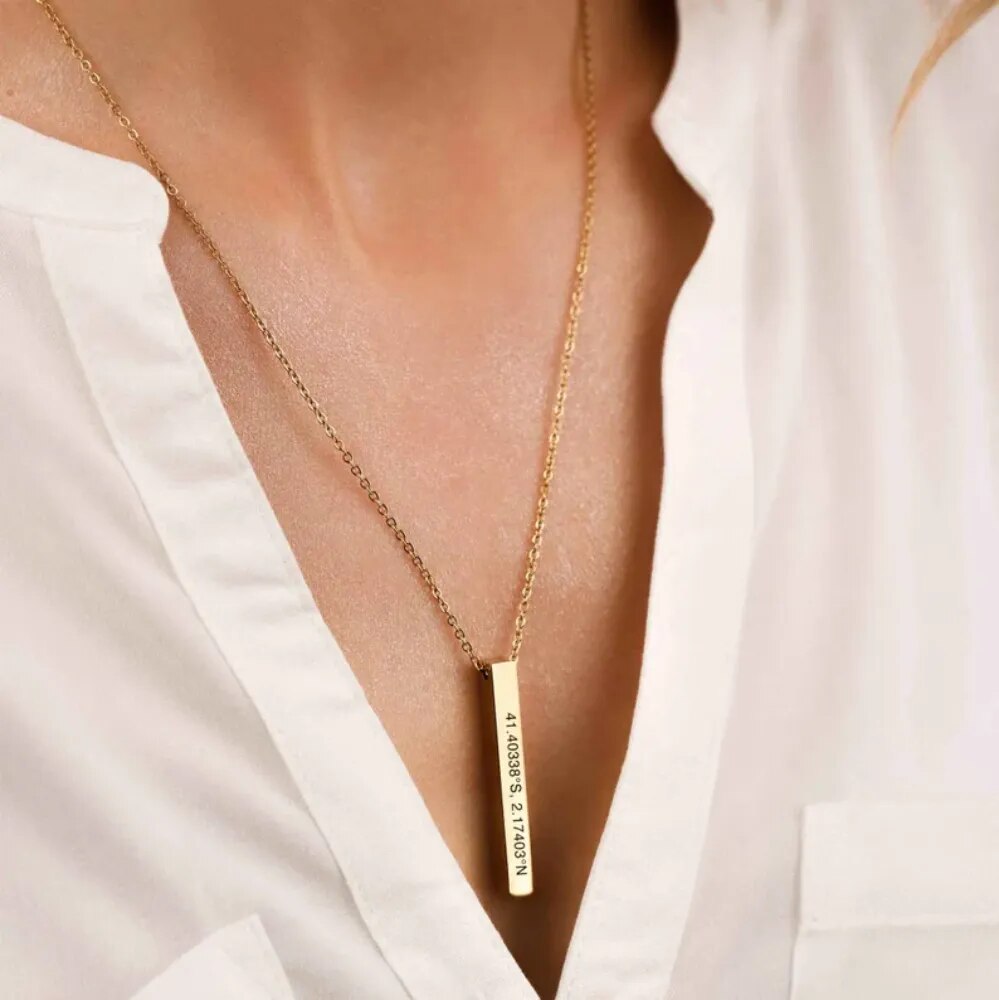 Add a personal touch to your loved one’s wardrobe with the Céline Personalized Vertical Bar Necklace! Accented with a free-moving square bar pendant, it can be personalized to create a thoughtful, unique gift. Embrace the opportunity to customize this pendant and engrave your special message, name, or date. Make a lasting impression!