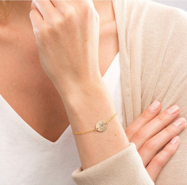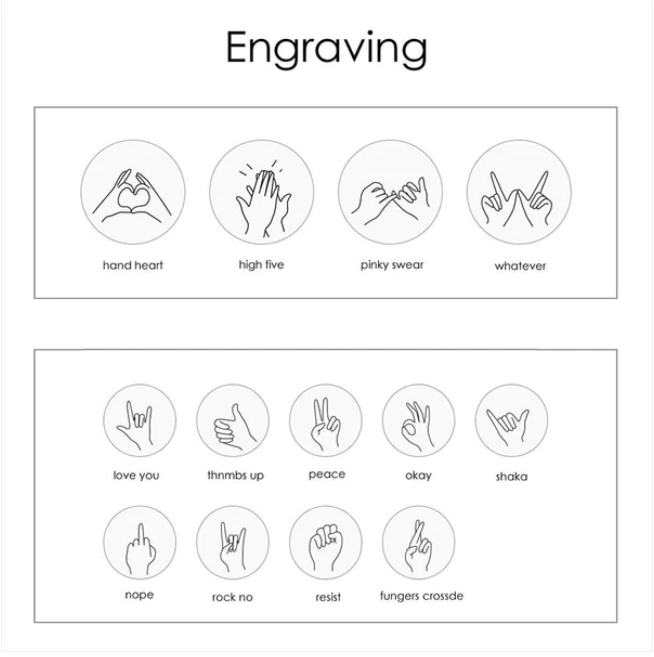 This meaningful Dainty Engraved Hand Gestures Bracelet is the perfect reminder that love needs no words. With its unique design and engraving, it'll be an unforgettable gift for that special someone.