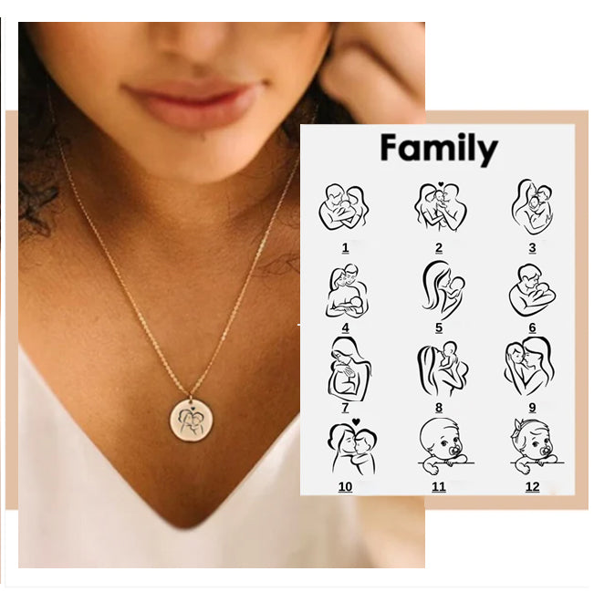 Show your loved ones how much you care by wearing this unique Family Love Illustrations necklace. Personalized with images close to your heart, it's a perfect reminder of the strong bonds you share.