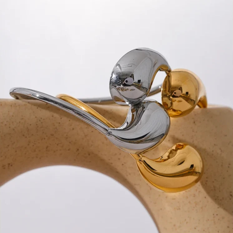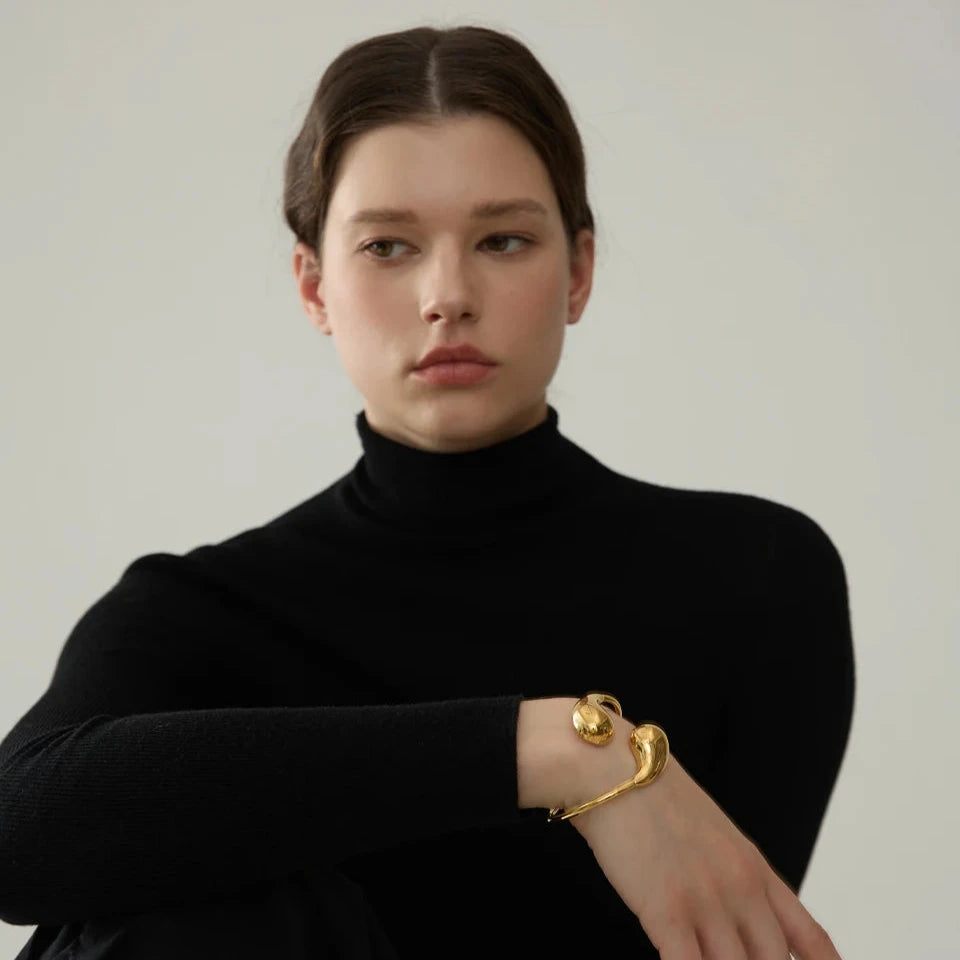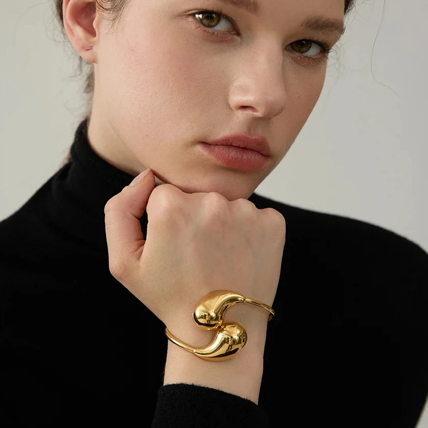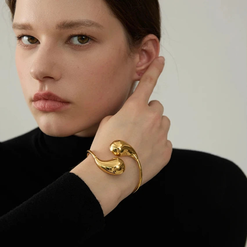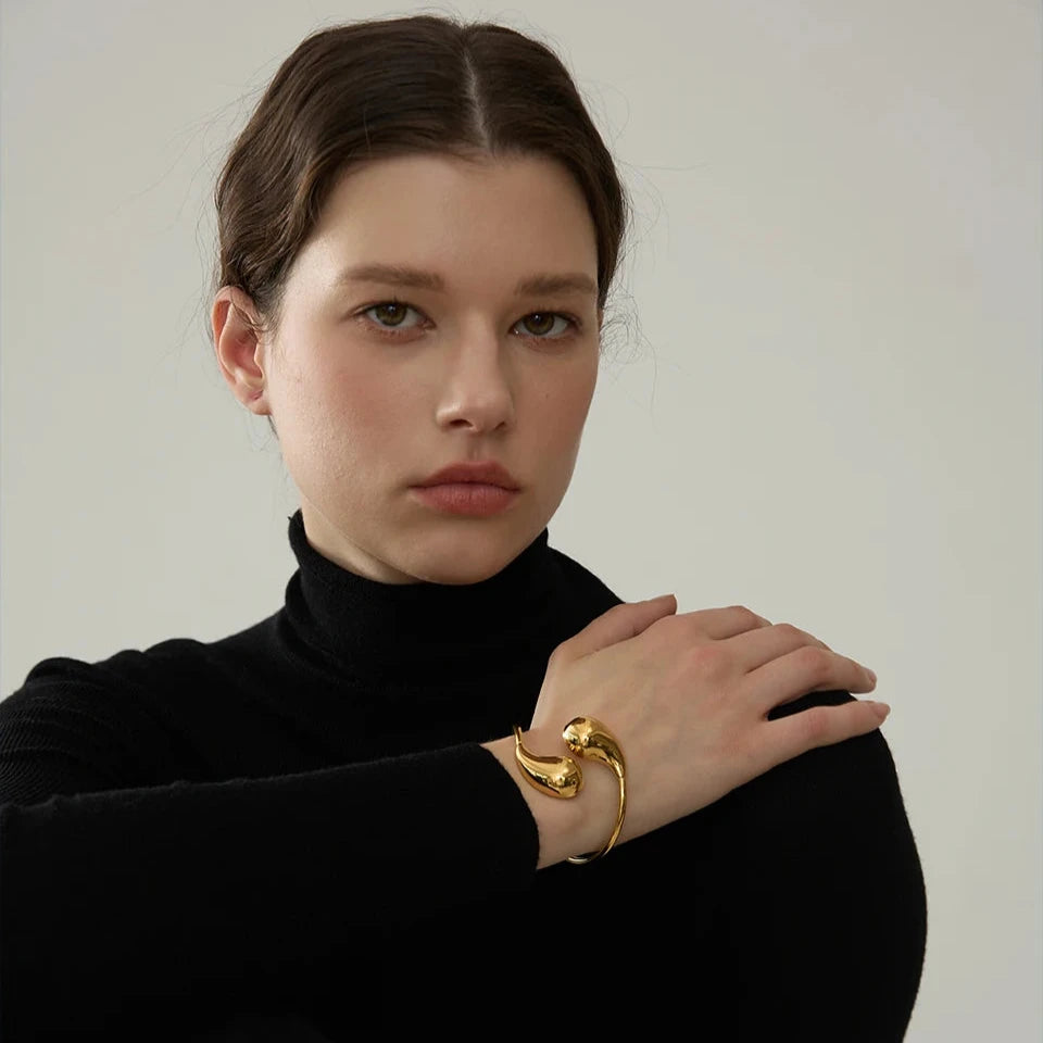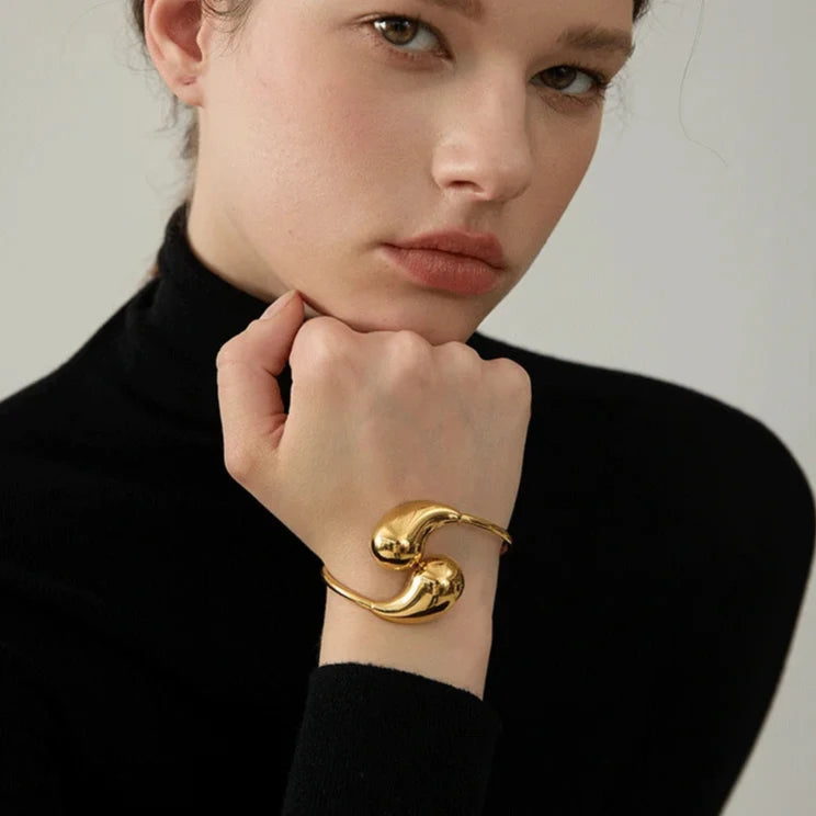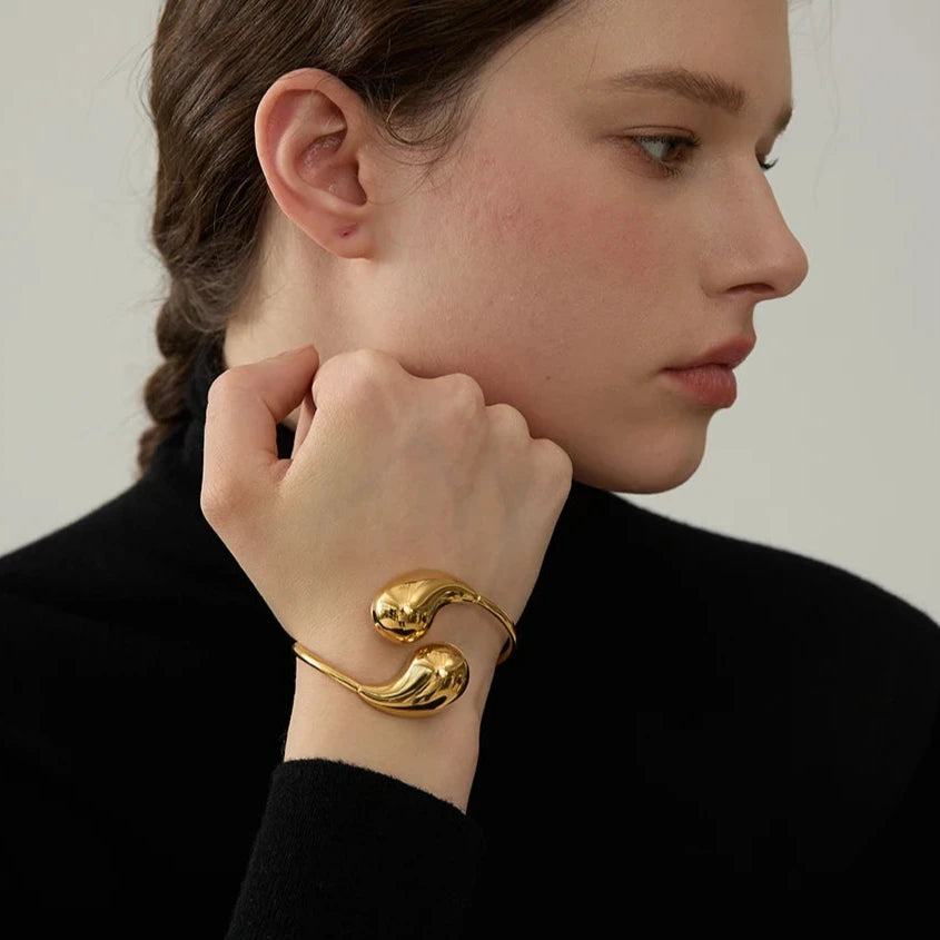The open-ended structure allows for an adjustable fit, ensuring comfort and versatility for wrists of all sizes. The sleek curves of the bracelet create an illusion of continuous movement, symbolizing endless possibilities and eternal style.