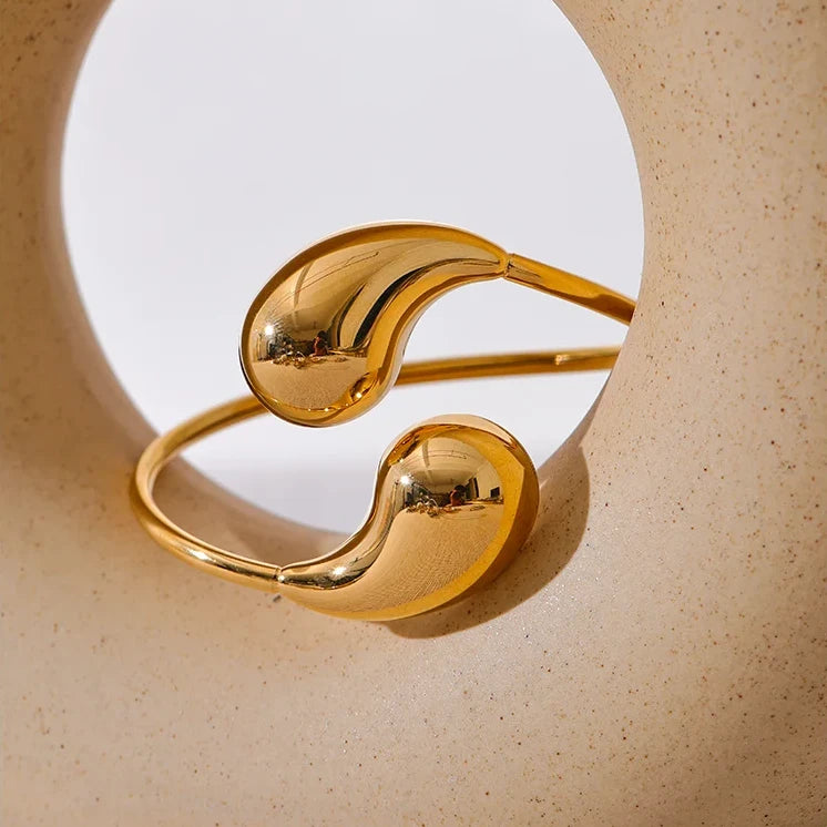 Introducing the Infinity Drop Gold Bracelet, a timeless piece of jewelry that embodies elegance and sophistication. This bracelet features a unique infinity design, crafted with a smooth, high-shine finish that captures and reflects light beautifully. The lustrous gold tone of the bracelet adds a touch of luxury to any outfit, making it perfect for both casual and formal occasions.