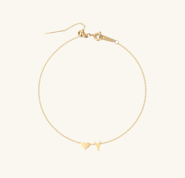 Show someone you love how much they mean to you with the LoveMari Heart Initial Bracelet. Its unique and lovely design makes it the perfect gift for any occasion. Personalize it with their initial and make it a truly special and heartfelt gift that they will cherish forever!