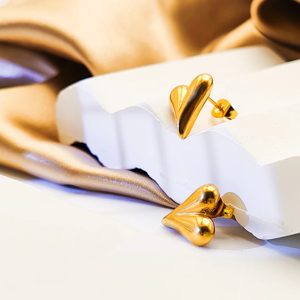 Add a touch of elegance to your look with these stunning golden heart-shaped earrings. Crafted from high-quality stainless steel, these earrings feature a smooth, polished surface that reflects light beautifully, creating a subtle glow around the edges. The minimalist yet classic design makes them perfect for both casual and formal occasions.