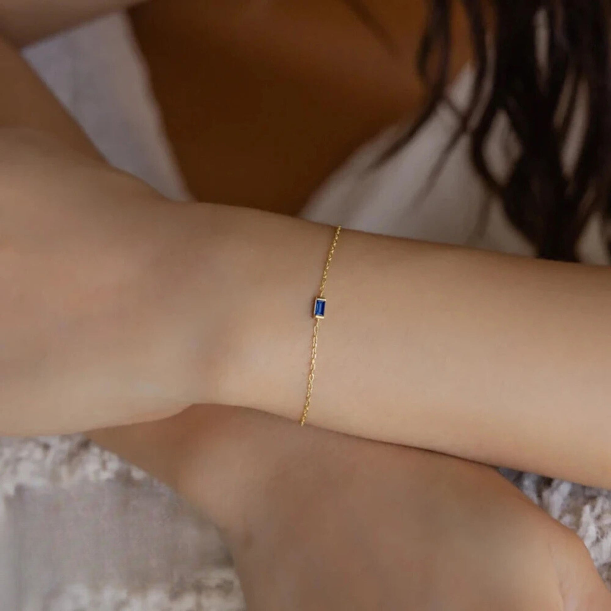Elevate your style with this delicate bracelet, featuring a fine gold chain and a stunning birthstone centerpiece. Its minimalist design adds a touch of elegance, making it perfect for both everyday wear and special occasions. This bracelet effortlessly complements any outfit with a hint of luxury.
