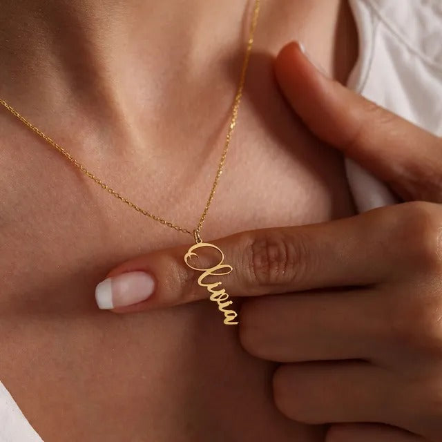 Introducing our exquisite Custom Vertical Name Gold Pendant! Crafted with precision and elegance, this unique piece allows you to personalize it with your chosen name, beautifully displayed in a vertical orientation. Made from high-quality gold, this pendant is perfect for adding a touch of luxury and individuality to your jewelry collection. Celebrate your name or gift it to a loved one for a timeless and personal treasure.